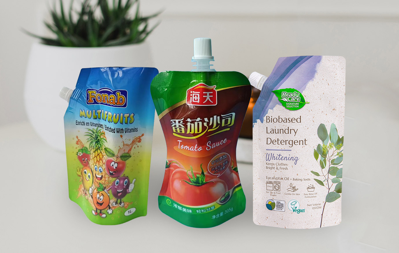 Las bolsas de boquilla se utilizan para empacar líquidos, semi-líquidos y productos viscosos, como bebidas, jugos, salsas, detergentes y más. La bolsa de pico presenta una boquilla especialmente diseñada, combinada con funcionalidad de apertura fácil y resellable, lo que permite a los consumidores beber o usar el contenido convenientemente. La estructura de la bolsa de boquilla está hecha de materiales de alta barrera, como películas compuestas múltiples de PET/AL/PE, que evitan efectivamente el oxígeno, el vapor de agua y otros factores externos que afectan la calidad del producto.